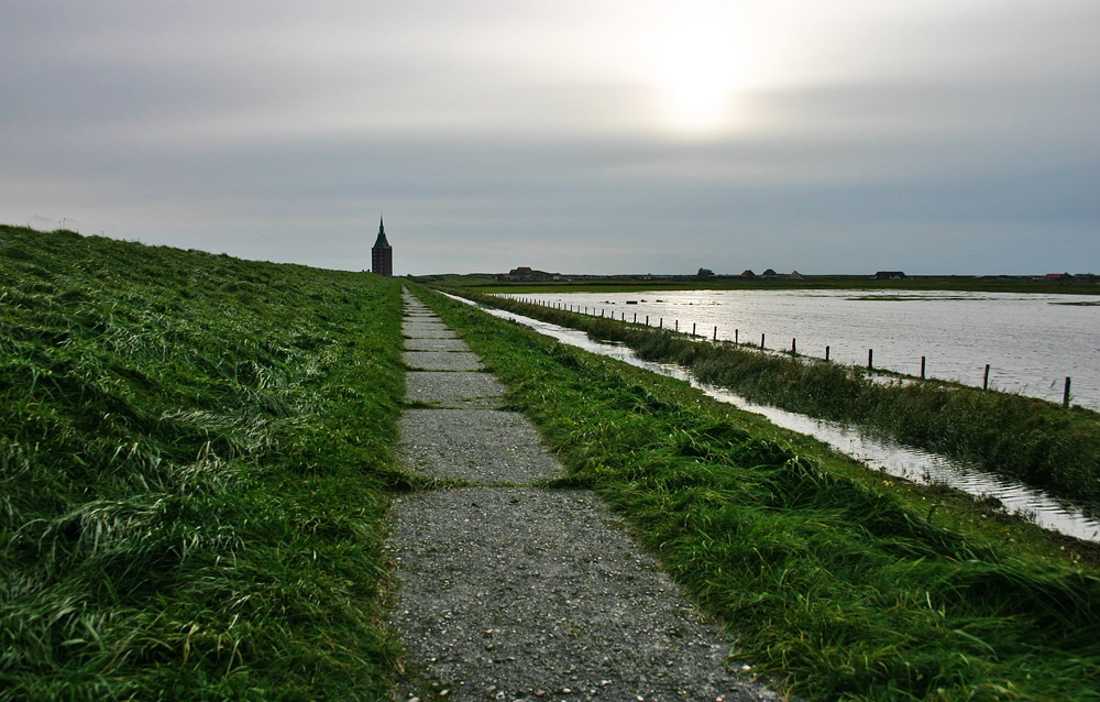Der Westgrodendeich besitzt gleich zwei Deichkronenwege: Einmal den normalen, der in der Regel von Radfahrern befahren wird, wir hingegen befinden uns gerade auf der alten Deichkrone nur wenige Meter nordwestlich.