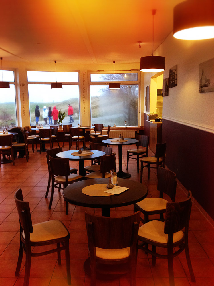 ‹ Das »Westturm-Café« lädt auch an kalten Wintertagen zum Aufwärmen und Verweilen ein. In diesem Falle sind nicht mehr allzu viele Gäste da, nur wenige Minuten nach Aufnahme dieses Fotos wird das Café seine Pforten schließen und erst einige Monate später unter einem neuen Pächter und mit verändertem Interieur neu eröffnen.