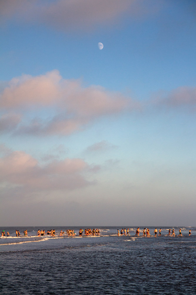 ‹ Beim Jahresabbaden der DLRG haben im Jahr 2014 ganze 124 Teilnehmer bei 5 Grad Wassertemperatur für einen Teilnahmerekord gesorgt.