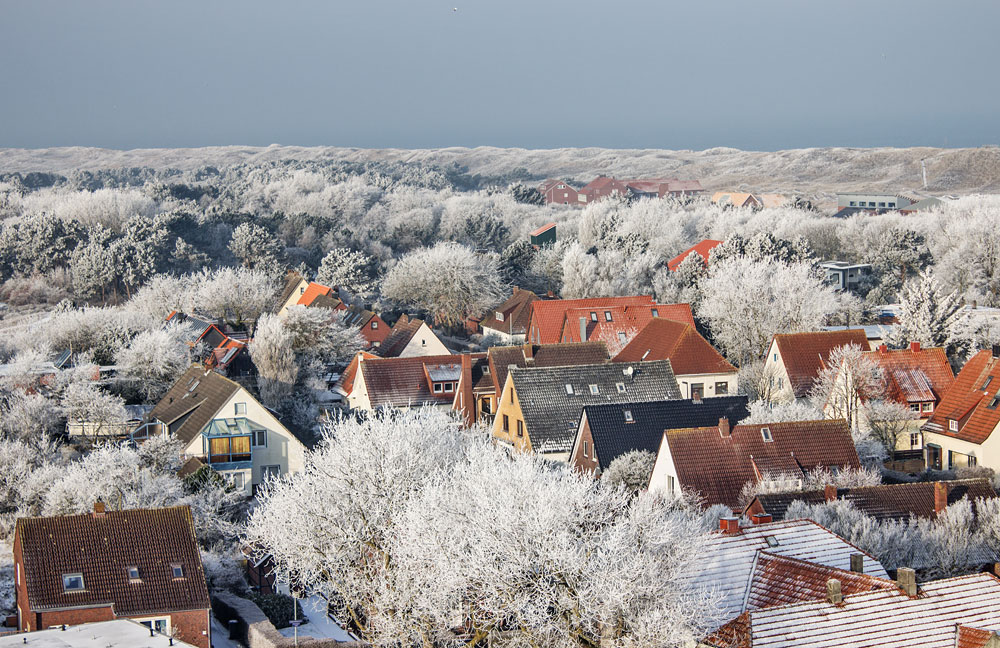 Blick zur »Friesenstraße« und in Richtung »Schulwäldchen«. In der Bildmitte ist der neue Schlauchturm der Feuerwehr erkennbar.