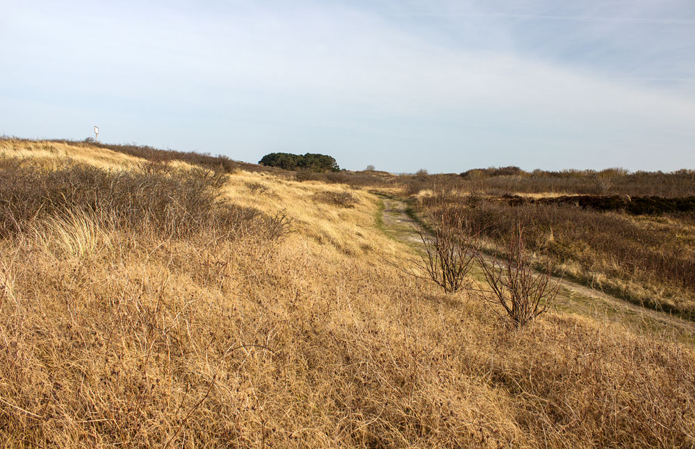 Ein schöner Dünenweg führt hier quer durch die Dünenlandschaft des Insel-Ostens in Richtung Kiefernwäldchen.