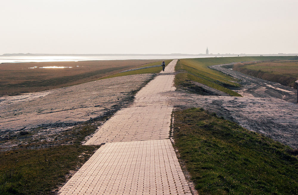 Das Foto entstand an der Nahtstelle zwischen dem hinter uns liegenden bereits erhöhten Ostgrodendeich und dem alten, deutlich niedrigeren Teilstück vor uns.