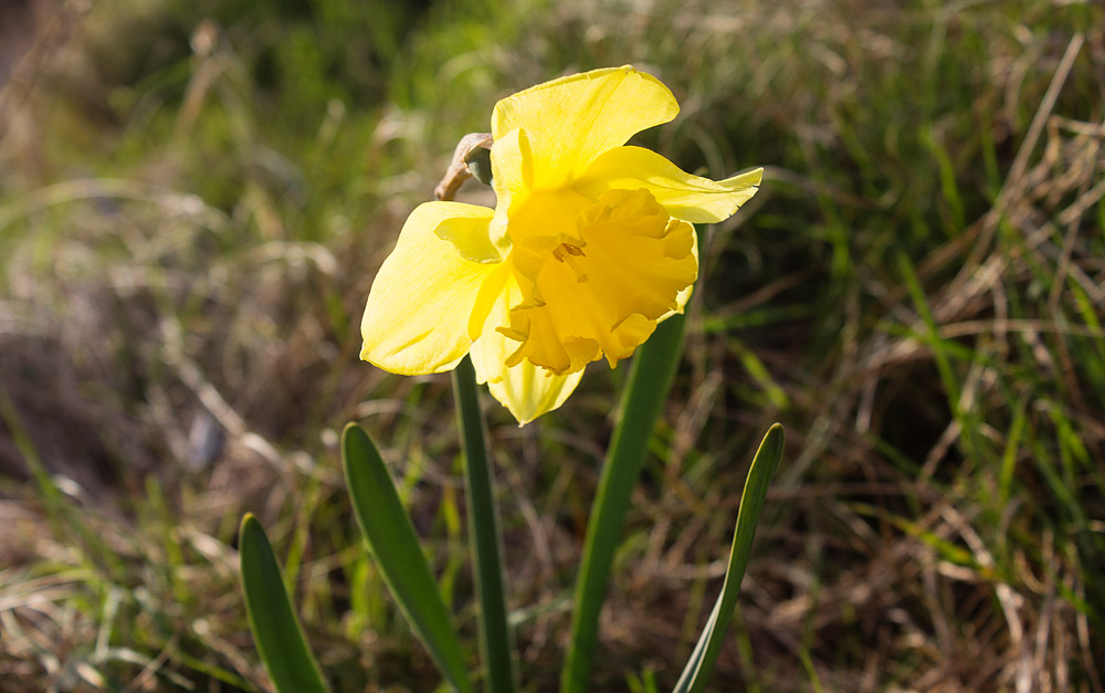Eine gelbe Narzisse in der Nähe des Dorfgrodendeichs.