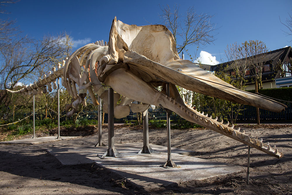 Im April 2017 war es endlich soweit: Das Pottwal-Skelett wurde vorm Natioalparkhaus »Rosenhaus« aufgestellt – gut ein Jahr, nachdem der Wal am Wangerooger Ostende gestrandet war.