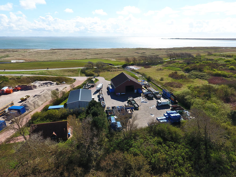 Westlich des Inseldorfes befindet sich, am Rande der ehemaligen Mülldeponie, eine Anlage, die den Hausmüll für den Transport per Bahn und Schiff preßt. Die Entsorgung der Inselabfälle erfolgt im »Abfallwirtschaftszentrum Wiefels«.