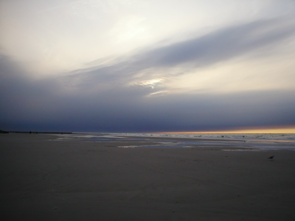 Schlechtes Wetter zieht auf, am Horizont hängen bläulich-graue Wolken.