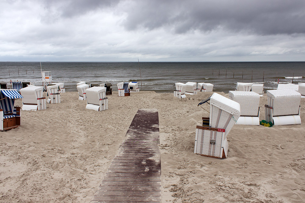 Dieser Steg führt auf direktem Wege zum Ostbadefeld, quer durchs Strandkorb-Ostfeld hindurch. Das Wetter lädt allerdings nicht zum Baden ein.