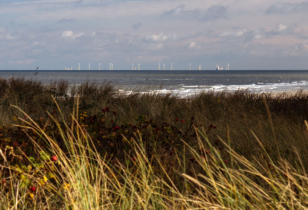 Hier ein Blick nach Nordosten, wo man den Windpark »Nordergründe« erkennen kann.