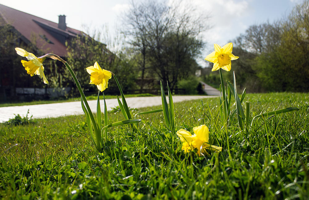 Ein paar Narzissen wachsen am Deichabschnitt »Neudeich« nahe des gleichnamigen Cafés im Ostteil der Insel.