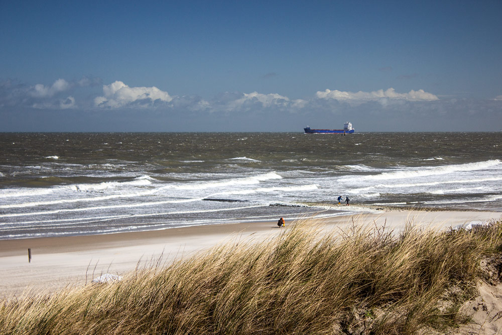 Im »Wangerooger Fahrwasser« zieht gerade ein Tanker vobei, er befindet sich zum Aufnahmezeitpunkt in unmittelbarer Nähe des Pegels.