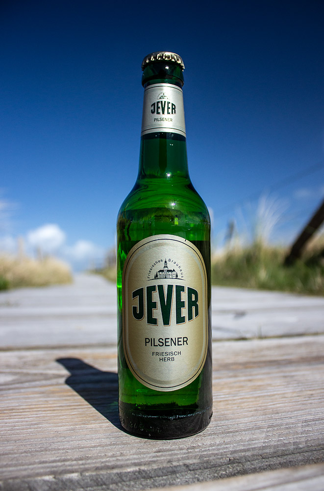 ‹ Kurze Pause! Da trifft es sich gut, daß auch eine Flasche friesisch-herber Gerstensaft mit im Gepäck ist.