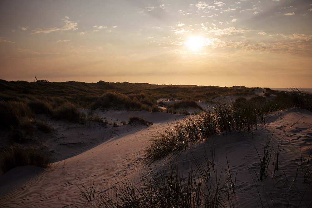 Golden glänzt der Strandhafer, die tiefstehende Abendsonne taucht die Dünen in ein angenehm warmes Licht.