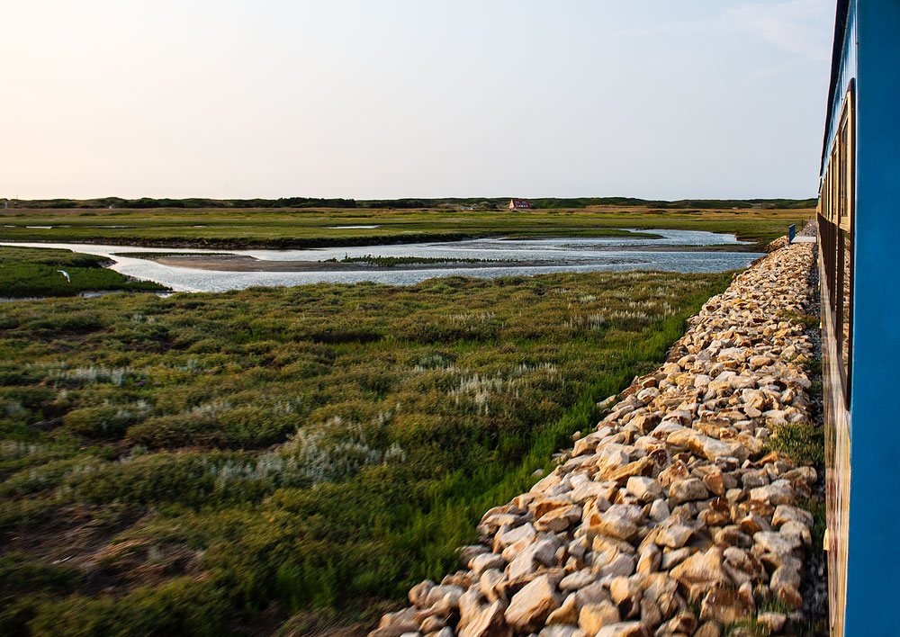 Blick auf die Lagune im Westaußengroden, im Hintergrund die »Saline« und rechts der Bahndamm.