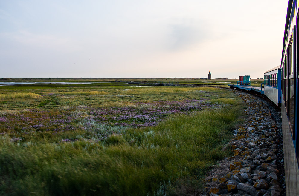 Wir blicken noch einmal zurück zum Zugende. Wie man an den Gepäckcontainern erkennt, waren an jenem Freitagabend für Hochsommer-Verhältnisse nur sehr wenige Fahrgäste mit im Zug.