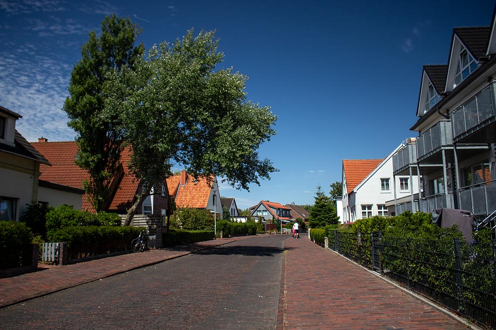 Hier ein Blick von Süden in die Kapitän-Wittenberg-Straße hinein, eine der eher wenig frequentierten Inselstraßen.