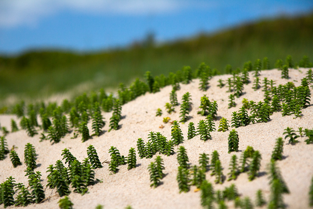 Wie ein Miniatur-Wald auf einem flachen Hügel wächst die Salzmiere hier im weißen Sand.