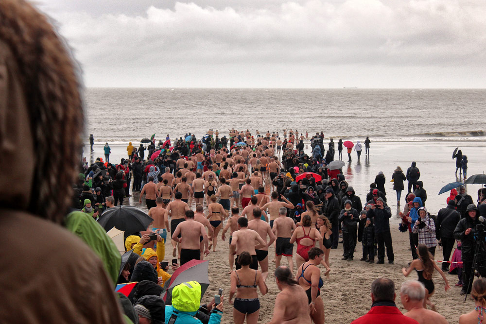 Trotz des eigentlich eher abschreckenden Wetters haben auch 2017 ganze 152 Mutige am mittlerweile traditionellen Jahres-Abbaden teilgenommen und sich am Silvestertag um drei Uhr nachmittags in die Nordsee gewagt.