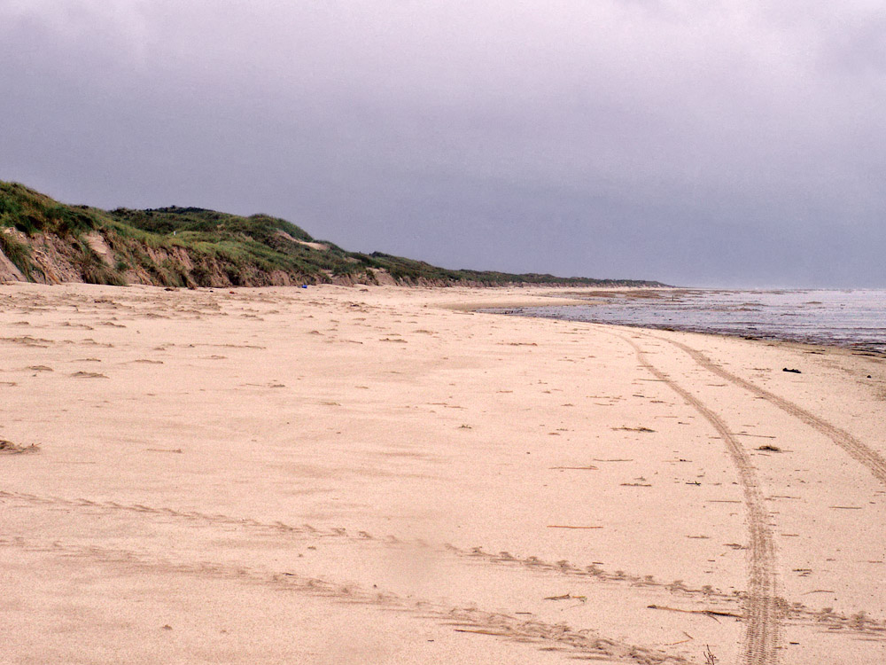 Nach der Sturmflut war der Bildautor mit seinem geländegängigen Fahrzeug am Strand unterwegs und hat die von der Flut verursachten Schäden an den Dünen inspiziert. Als dieses Foto entstand, war er dem Ostende schon ziemlich nah, auch hier waren Dünenabbrüche zu verzeichnen.