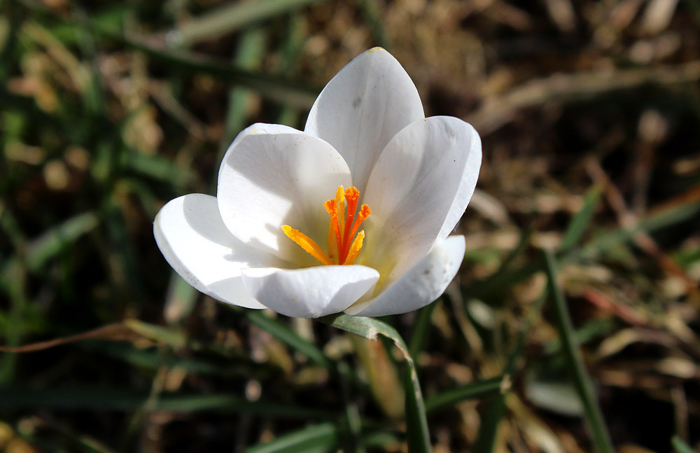 Krokusse gehören zu den ersten Frühlingsboten und dadurch freut man sich besonders über ihren Anblick. Hier ein weißes Exemplar am Straßenrand der Straße zum Osten.