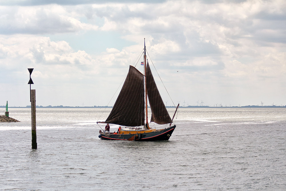 Dieses schöne Plattbodenschiff ist gerade am Anleger eingetroffen.