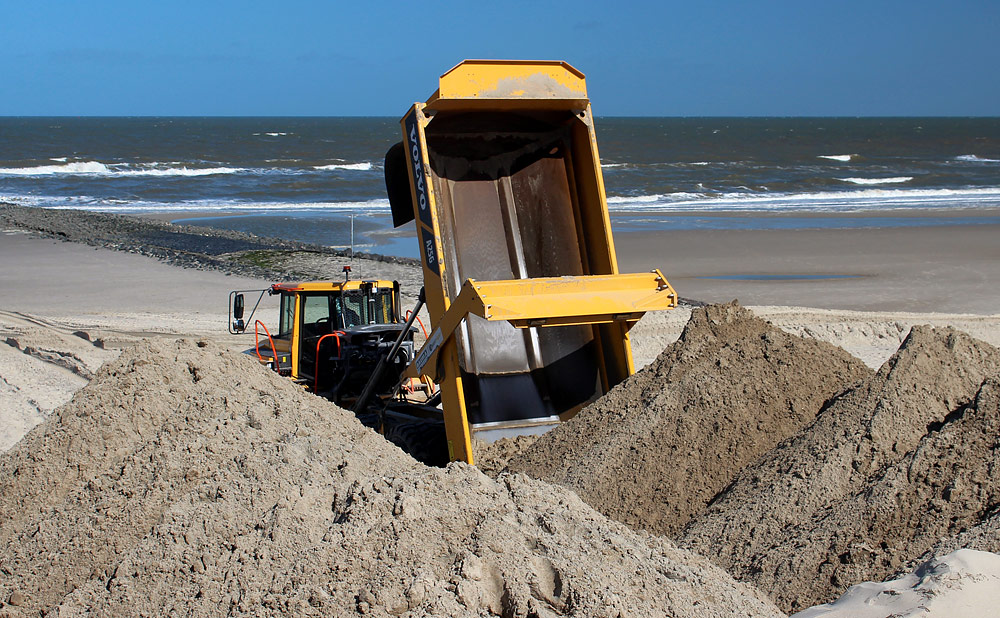 Die Ladefläche ist leer und wieder ist etwas Sand, der sich kurz zuvor noch am Oststrand befand, an den Bade- und Burgenstrand gewandert.