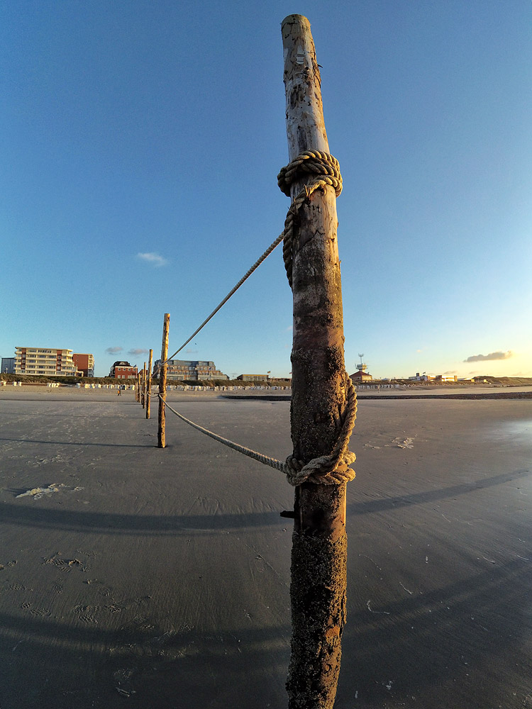 ‹ An dieser Stelle endet die Begrenzung des Hauptbadefeldes. Heutzutage ist sie vorne offen, früher hingegen waren die Felder auch nach Norden hin durch Pfähle und Taue begrenzt.