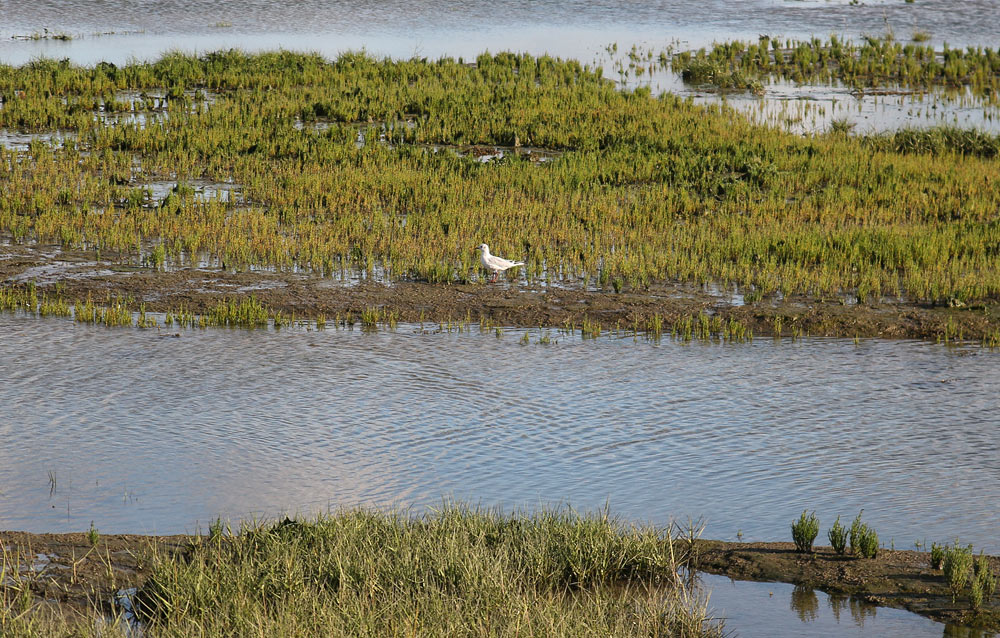 Eine junge Lachmöwe am Rande des Wattenmeers in der sogenannten Quellerzone.