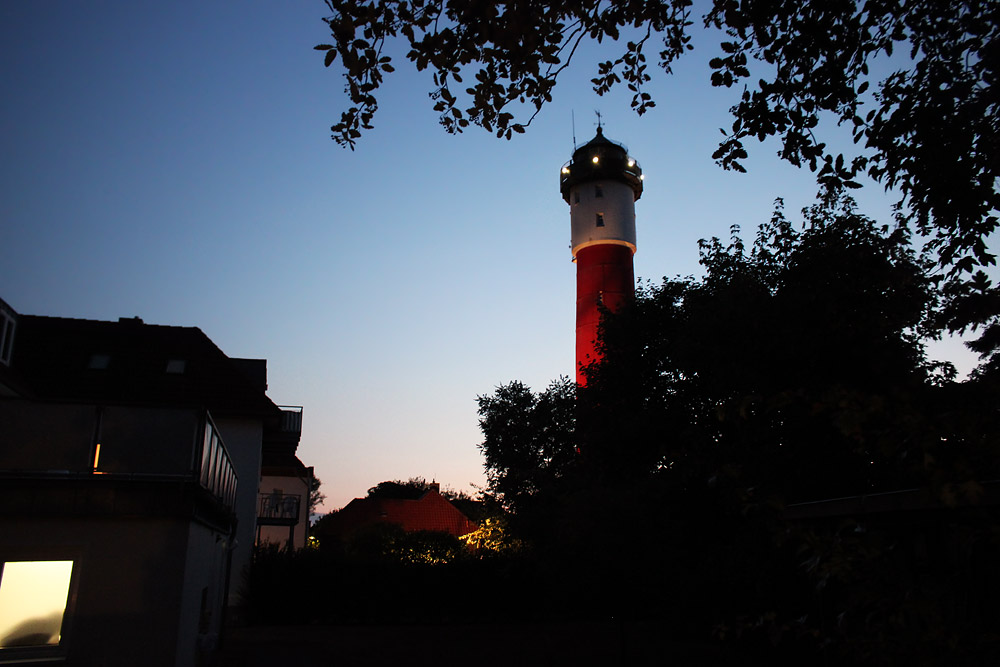 Alter Leuchtturm zur Blauen Stunde, in der langsam die Dämmerung der Nacht weicht.