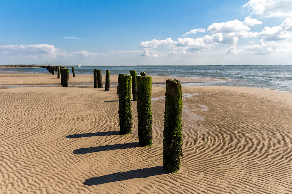 Pfähle der ehemaligen Inselbahn-Pfahljochstrecke zum Ostende.