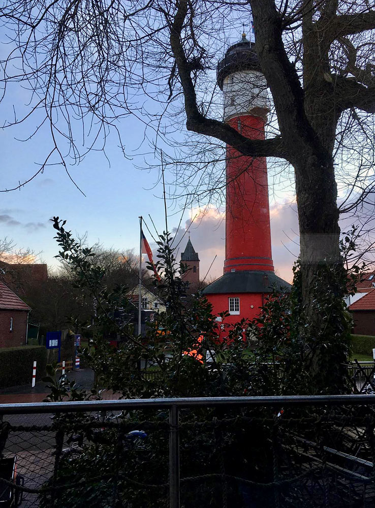 ‹ Das »Café Klönschnack« befindet sich direkt gegenüber vom Alten Leuchtturm. Einen entsprechend guten Blick hat man von dort auf den Turm.