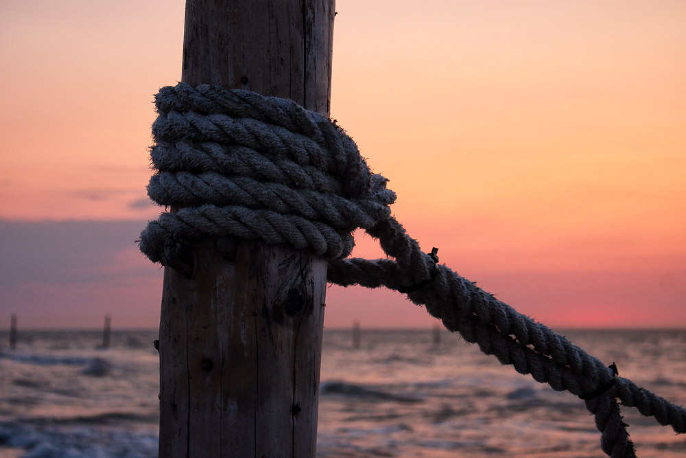 Die Badefelder sind durch mit Tauen verbundene Pfähle begrenzt, hier sehen wir einen dieser Pfähle im Detail.