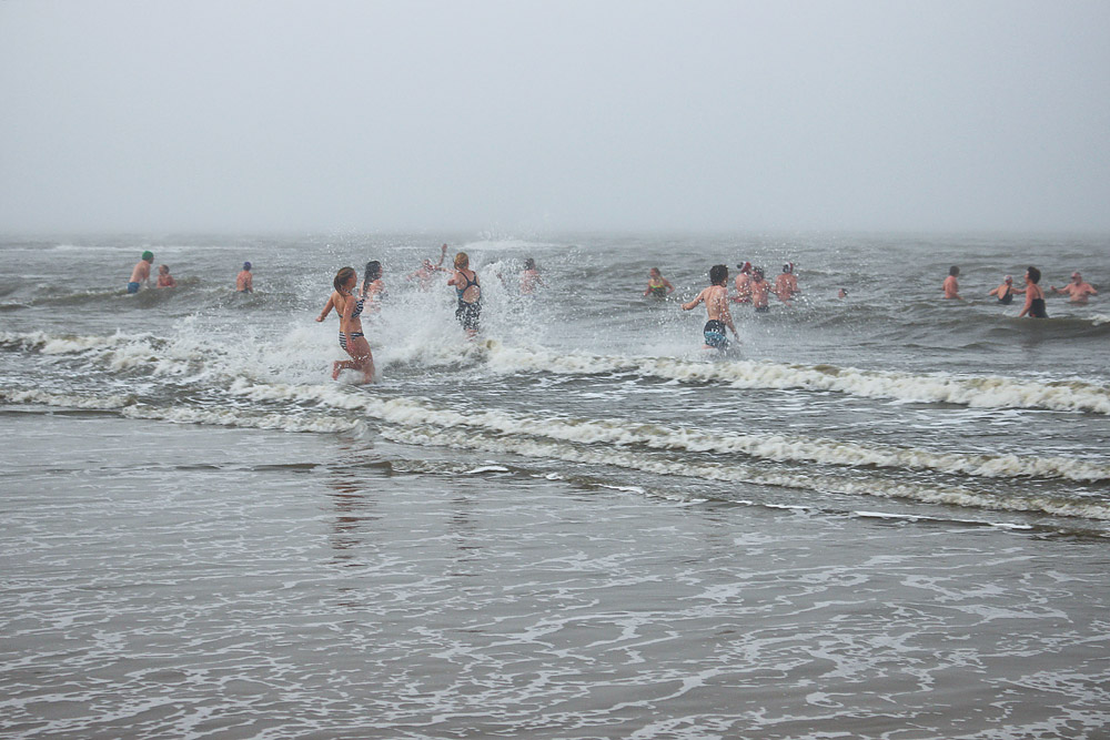 Badevergnügen bei muckeligen 6 Grad Luft- und 6 Grad Wassertemperatur.