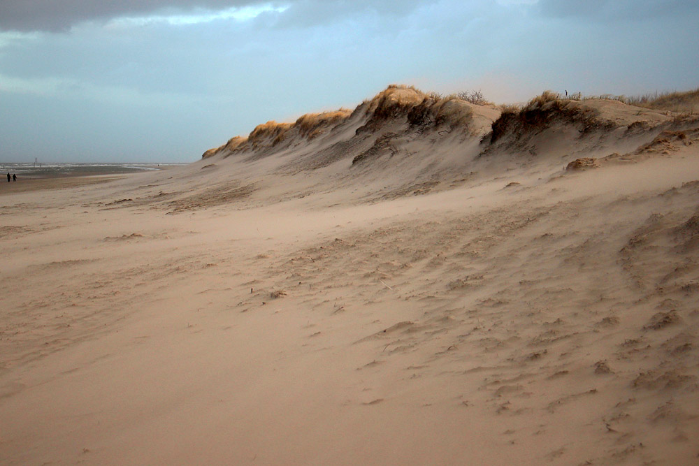 Wir befinden uns hier in der Nähe der Dünenüberwegung Neudeich, die Dünen steigen an dieser Stelle vergleichsweise flach an.