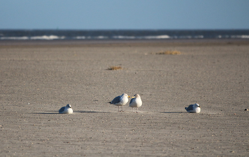 Ob die beiden Möwen in der Bildmitte tatsächlich »turteln«, ist zwar alles andere als sicher, sie sind sich aber ungewöhnlich nah. In der Regel halten Möwen zueinander gern einen gewissen Abstand – ähnlich wie wir Menschen.