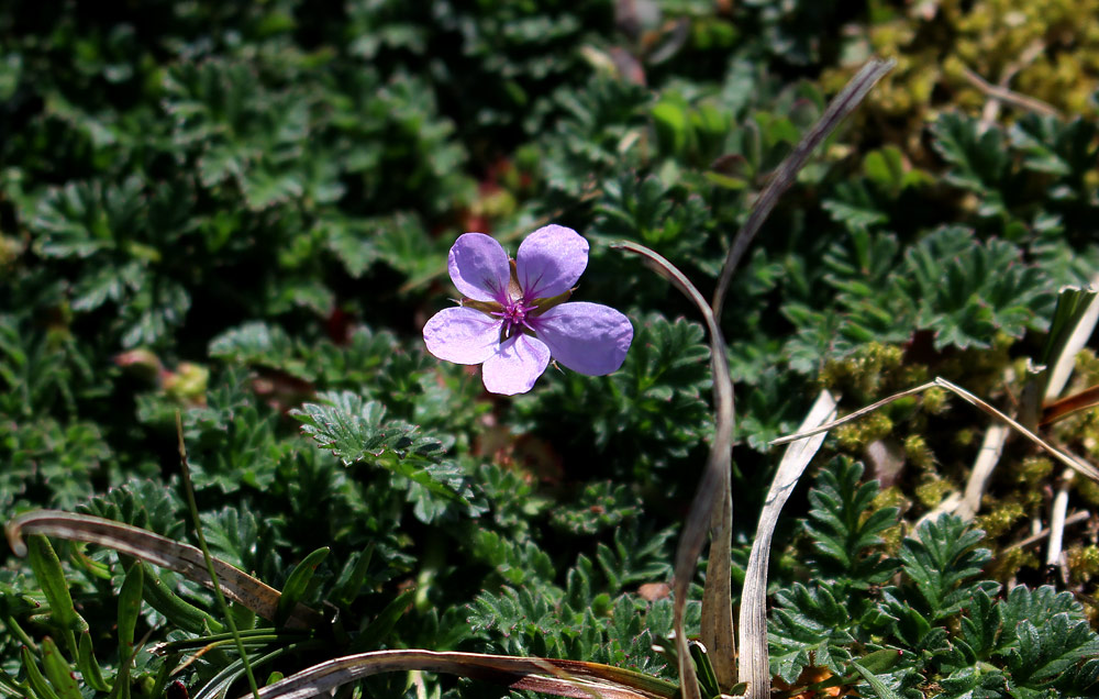 Unscheinbar, aber aus der Nähe betrachtet mit seinen lila Blüten ganz hübsch: Der Gewöhnliche Reiherschnabel aus der Familie der Storchschnabelgewächse, hier auf dem Süddeich zu finden.