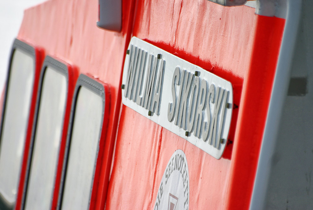 Der Vorgänger des heute auf Wangerooge stationierten Rettungsbootes »Fritz Thieme« war die »Wilma Sikorski«, ein 1999 bei Schweers in Bardenfleth erbautes 9,41 Meter langes Rettungsboot der DGzRS. Hier eine Detailaufnahme, die die Backbordseite des Schiffs zeigt.