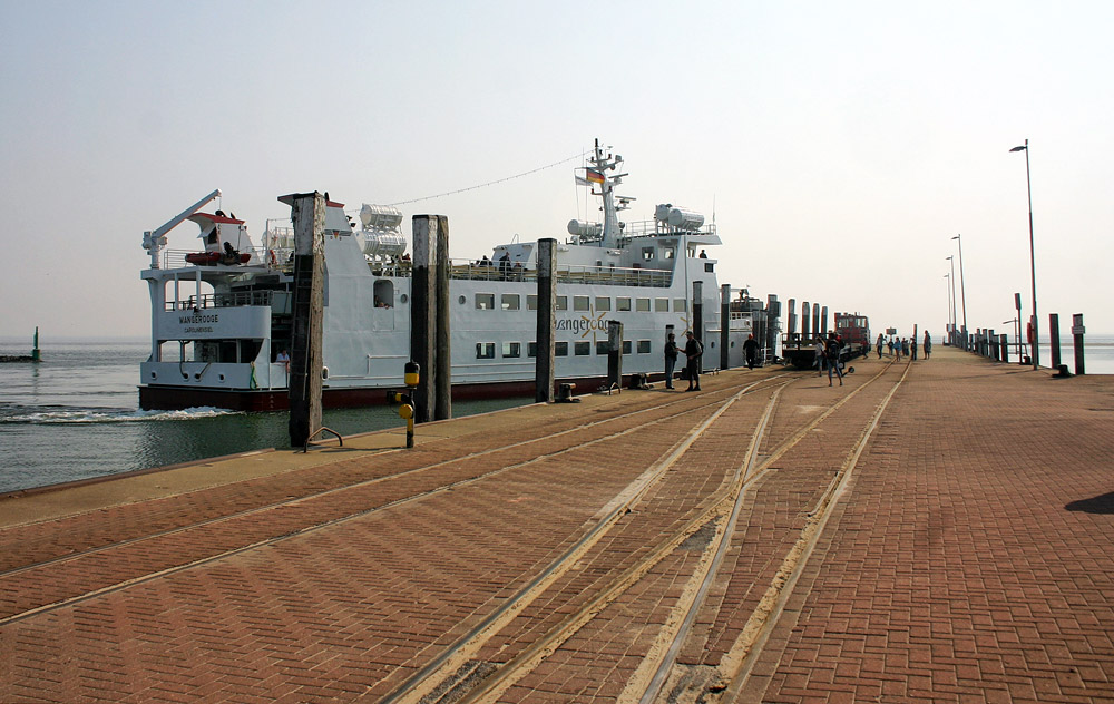 Gerade ist das Wendemanöver im Gange, in Kürze wird die MS »Wangerooge« an der Kaimauer des Westanlegers anlegen.