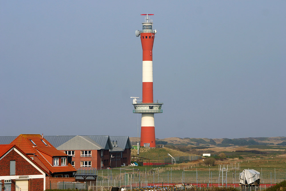 Vom Deckwerk aus hat man einen guten Blick auf den Neuen Leuchtturm. Bei dem Gebäude davor handelt es sich um das Bünder Schullandheim, welches seit 1975 an dem Standort existiert.