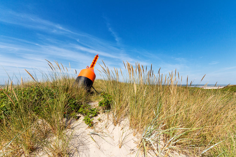 Eine Backbord-Fahrwassertonne wurde in den Dünen nördlich der Westingstraße aufgestellt.