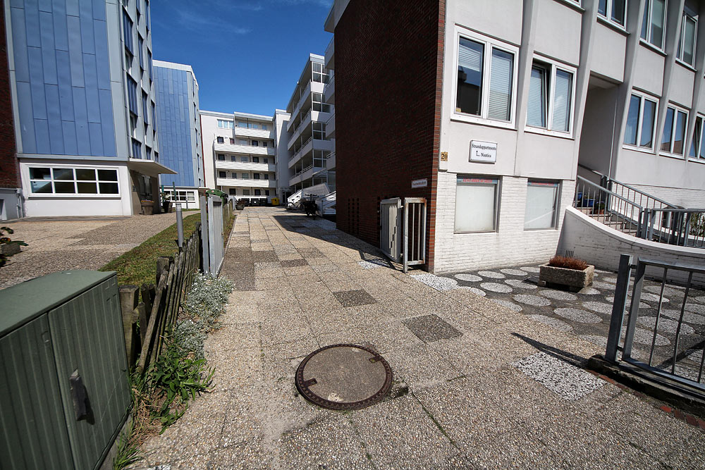 Ende der 1960er, Anfang der 1970er Jahre galt Waschbeton als absolut »in« und versprühte – heutzutage kaum noch vorstellbar – einen modernen Schick. Wer sich noch einmal in damalige Zeiten zurück versetzen möchte, dem sei ein Besuch dieses Waschbetonplatten-Ensembles in der Peterstraße empfohlen. Nur irgendwie schade, daß das Poseidon (links), das Monopol (hinten) und das Haus Nautica (rechts) ohne diese äußerst ästhetischen Platten auskommen.