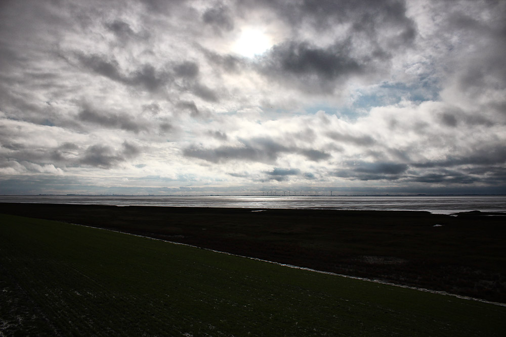 Herbstlicher Wolkenhimmel über dem Wattenmeer.