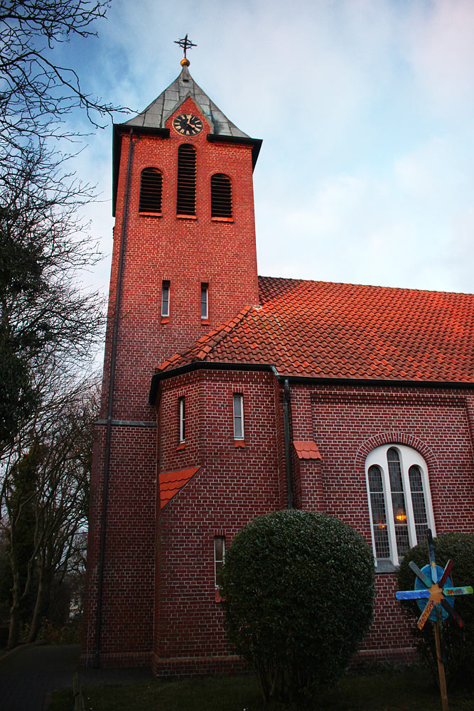 ‹ Der Turm der Nikolaikirche, vor der wir uns gerade befinden, wird von der tiefstehenden Nachmittags-Wintersonne angestrahlt.