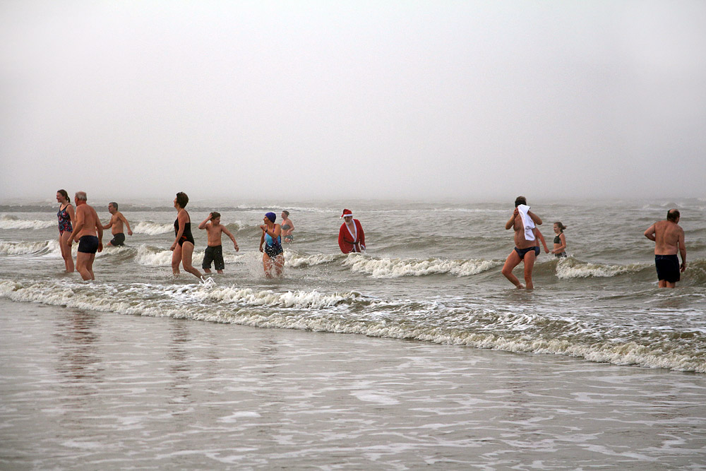 Sogar der leibhaftige Weihnachtsmann nimmt ein Bad in den kalten Fluten.