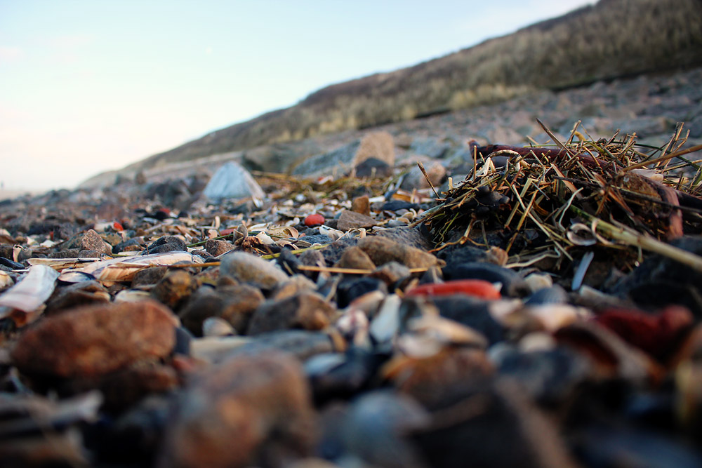 Am Fuß des Norddeckwerks hat sich, zwischen einigen losen Steinen, jede Menge Unrat angesammelt.