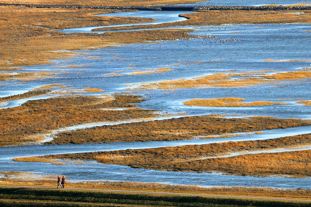 Blick auf die Lagune im Westaußengroden bei Hochwasser.