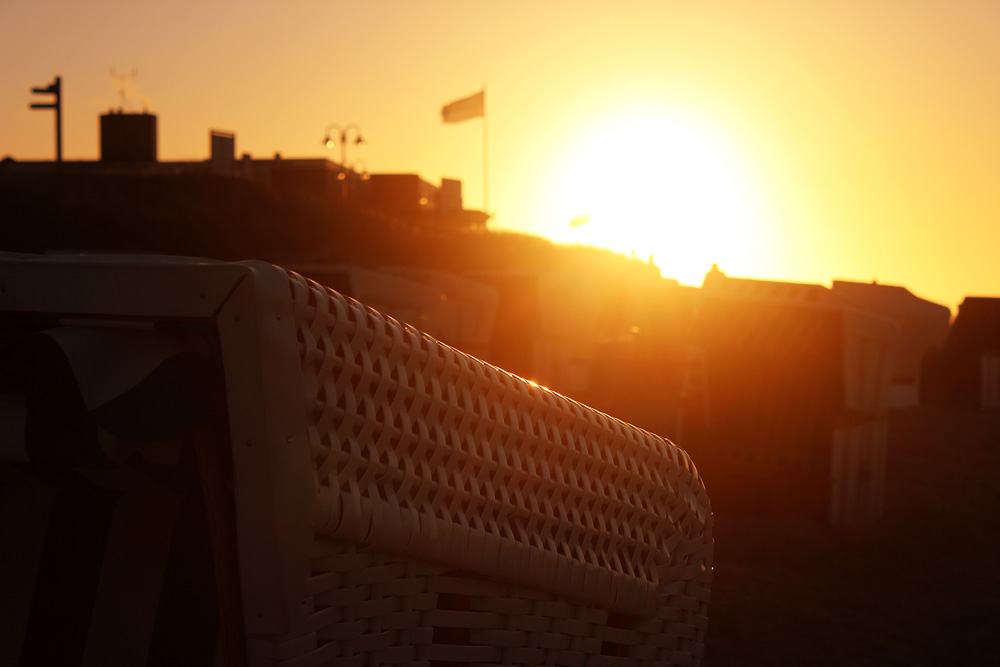 Die Strandkörbe am Hauptstrand werden in ein angenehmes, warmes Licht getaucht.