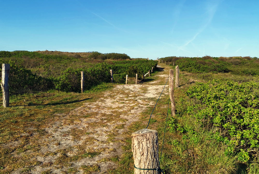 Weg durch die Dünen östlich des Ortes an der Überwegung Kläranlage.
