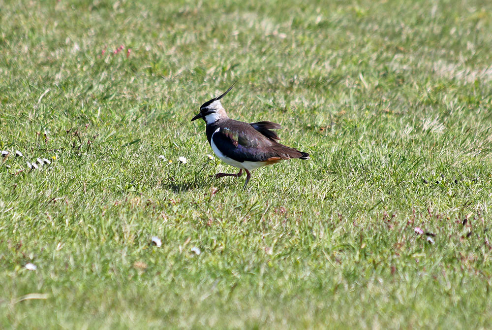 Ein Kiebitz ist hier im Westinnengroden unterwegs. Sowohl an ihrem Äußeren als auch an ihrem markanten »Kiwitt«-Ruf sind diese Regenpfeifer schnell und eindeutig zu erkennen.