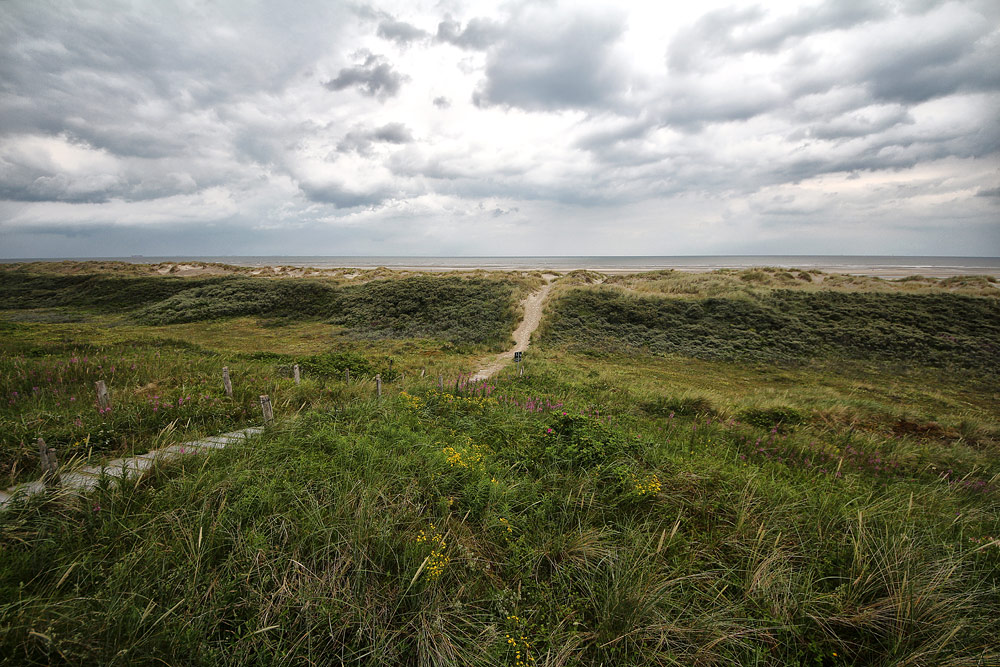 Blick nach Norden auf ein Dünental, die vorgelagerte Dünenkette und die Überwegung Ost I.