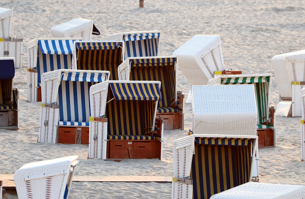 Blau-Weiß, Grün-Weiß, Blau-Gelb – im Gegensatz zu den 1980er und 1990er Jahren, in denen Orange, Beige und Blümchenmuster dominierten und auch das Korbgeflecht farbig war, ist man heute deutlich schlichter unterwegs.